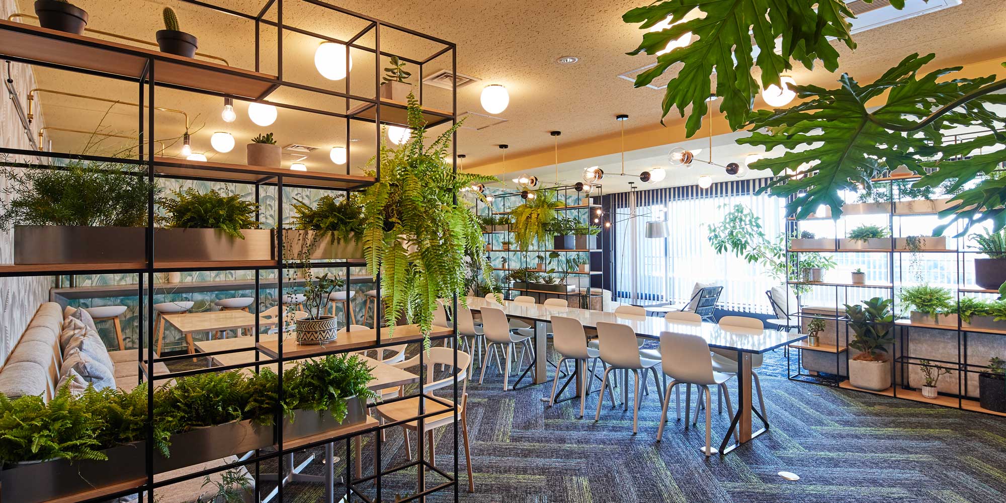 奥には、麻雀テーブル3台と個室を設け、カフェエリアとは違った色味の間接照明を使用し、従来の麻雀店とは違う雰囲気で楽しめるスペースとなりました。