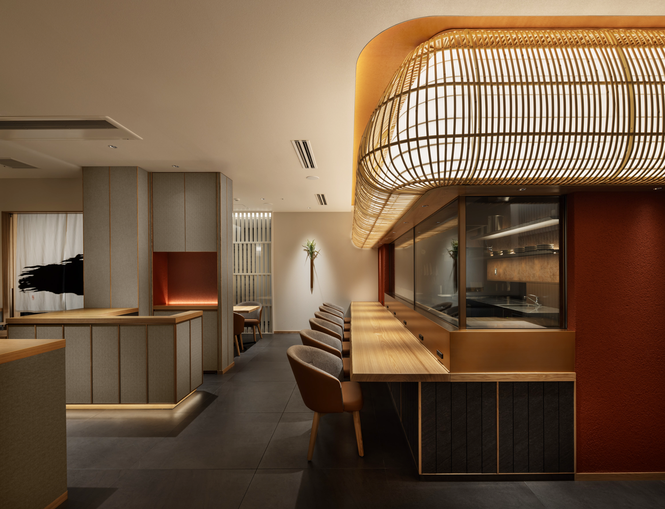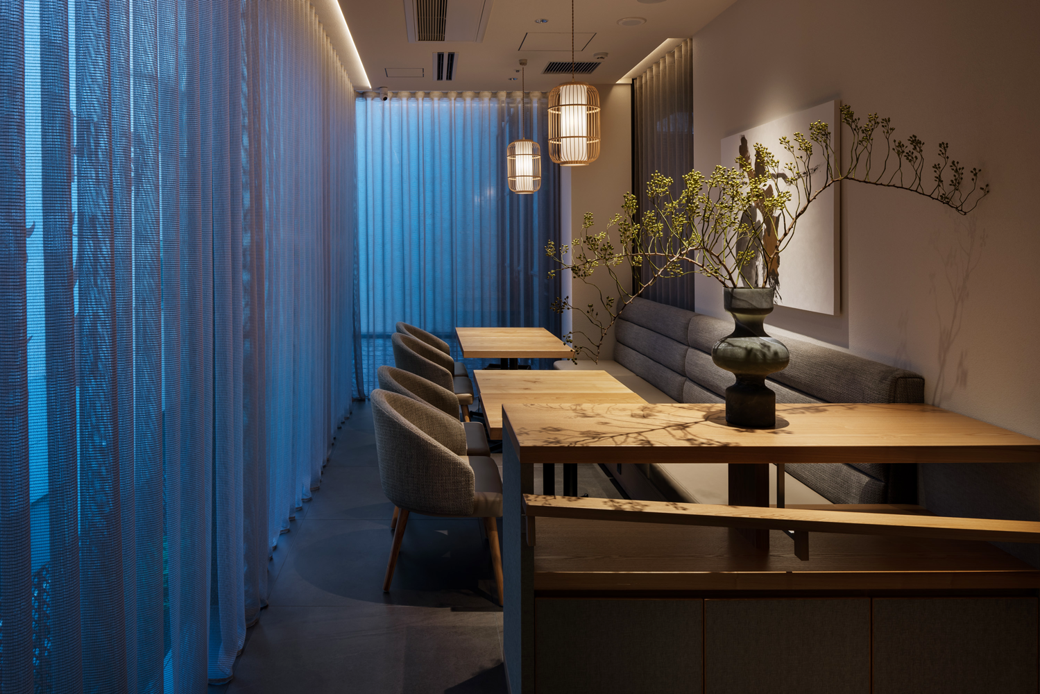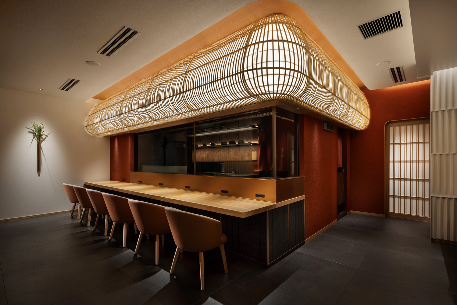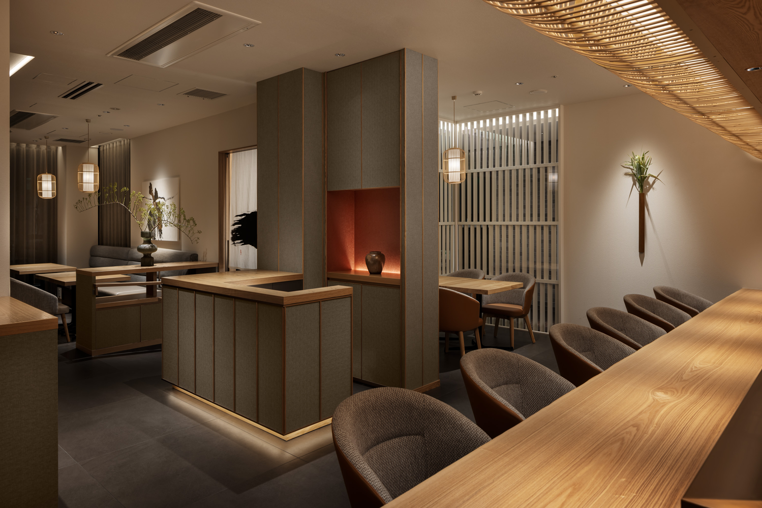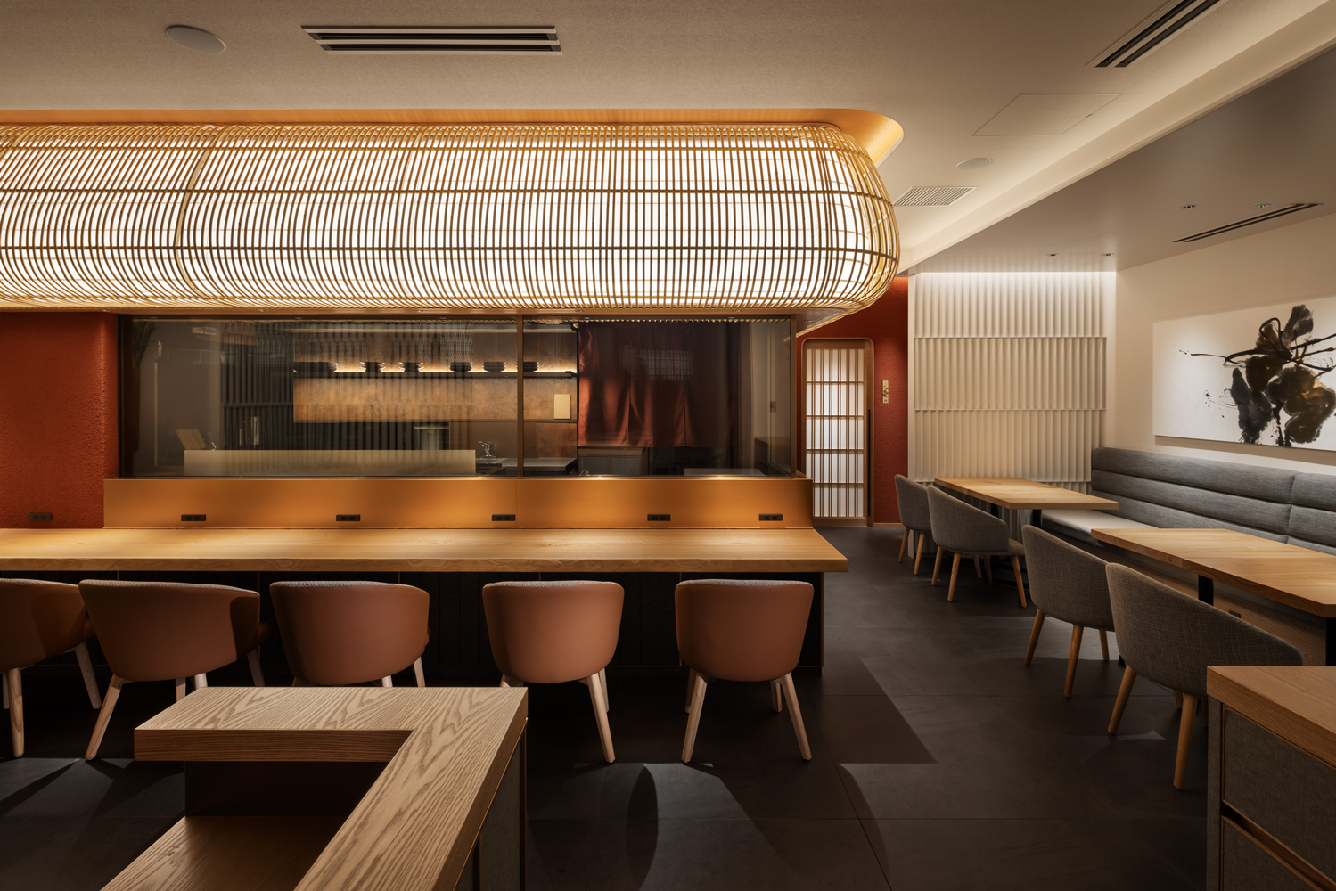 老舗の味にふさわしい品格と、現代的な美意識が交差するインテリアとなっています。