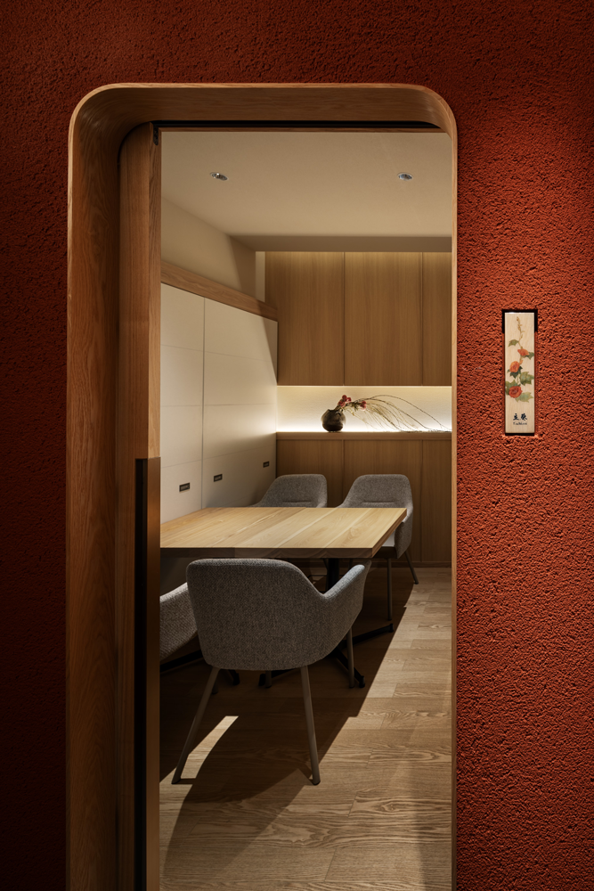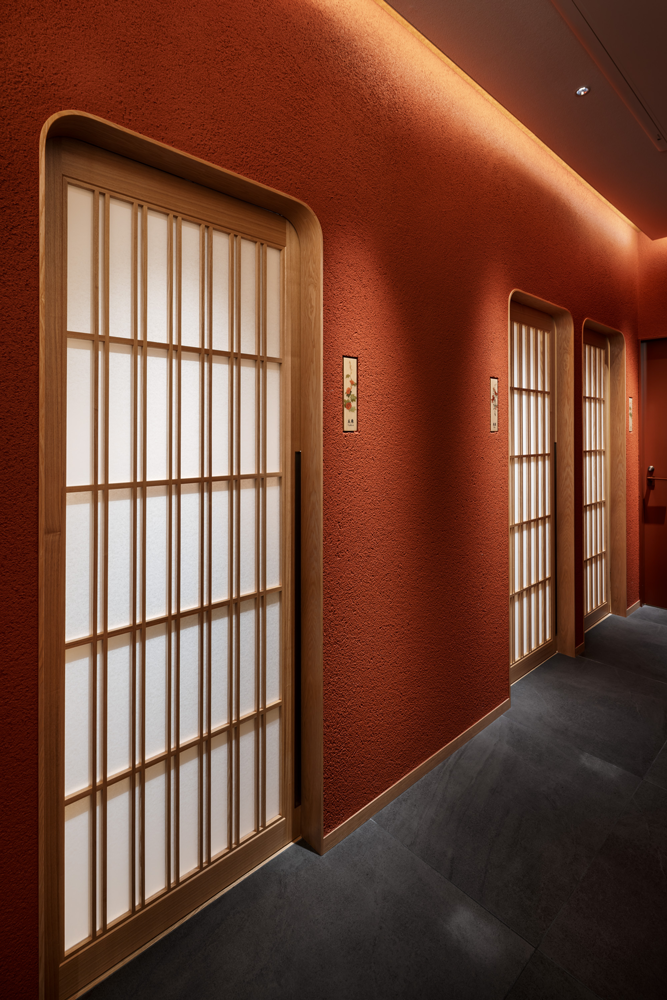 素材やディテールにこだわった家具が、落ち着きのある空間に豊かな表情を与えます。個室や店内全体は、接待や大切な会食といった“特別なひととき”を静かに引き立てる設えとしました。