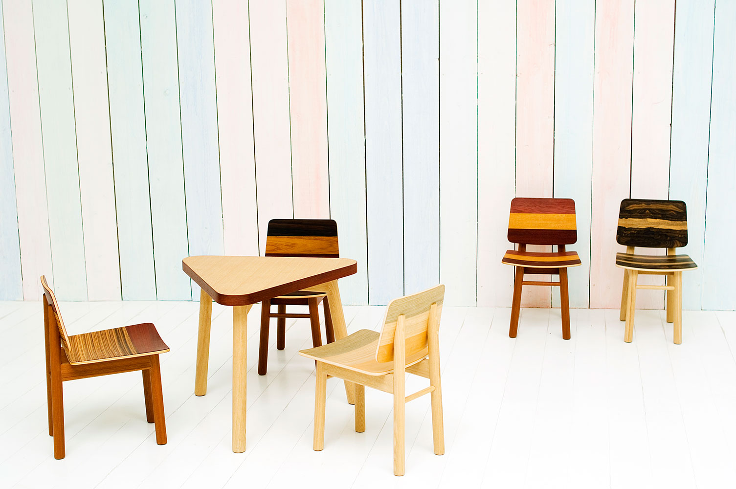 トーンチェアと同様に自然の木々を使用し、子どもには幼少の頃から良い素材、優しい素材に触れて育って欲しいと願いを込めて作りました。