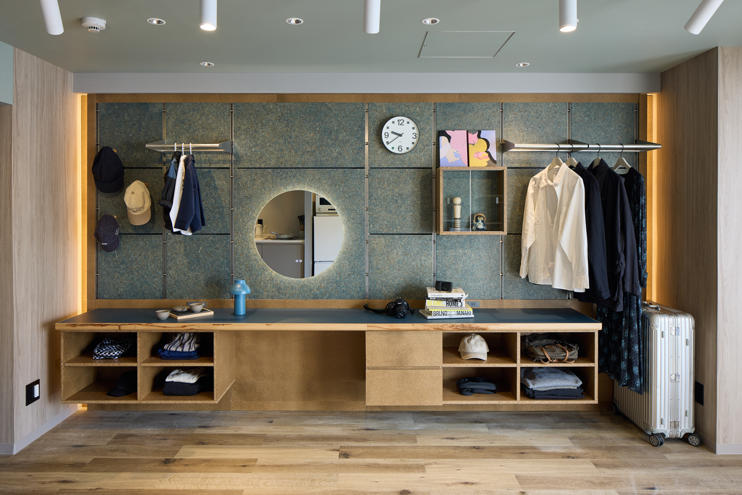 We were responsible for the design, planning, and production of “Sumu Wall,” the original furniture for guest rooms at “Sumu Ueno East,” an experimental apartment hotel in Higashi-Ueno, Tokyo.