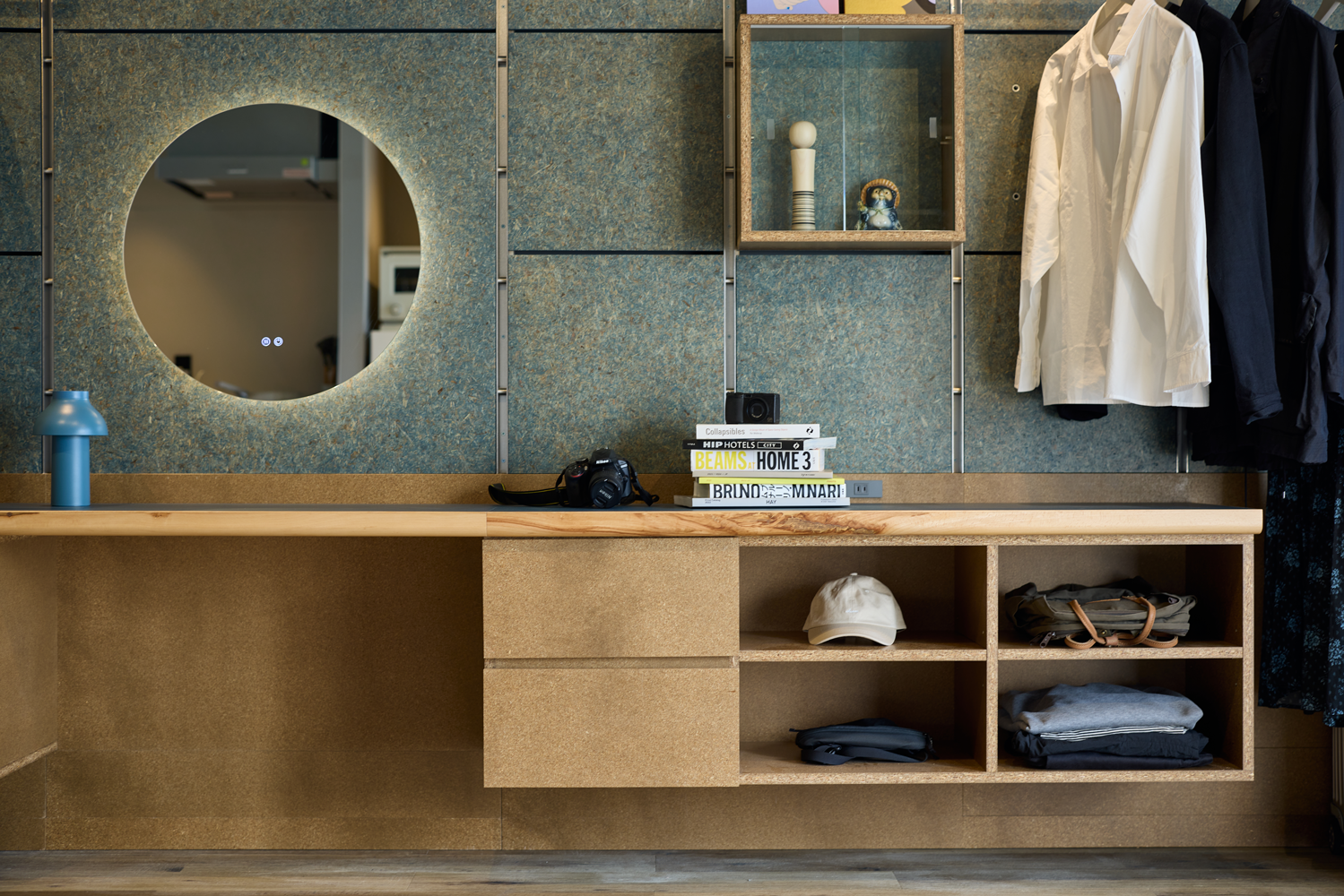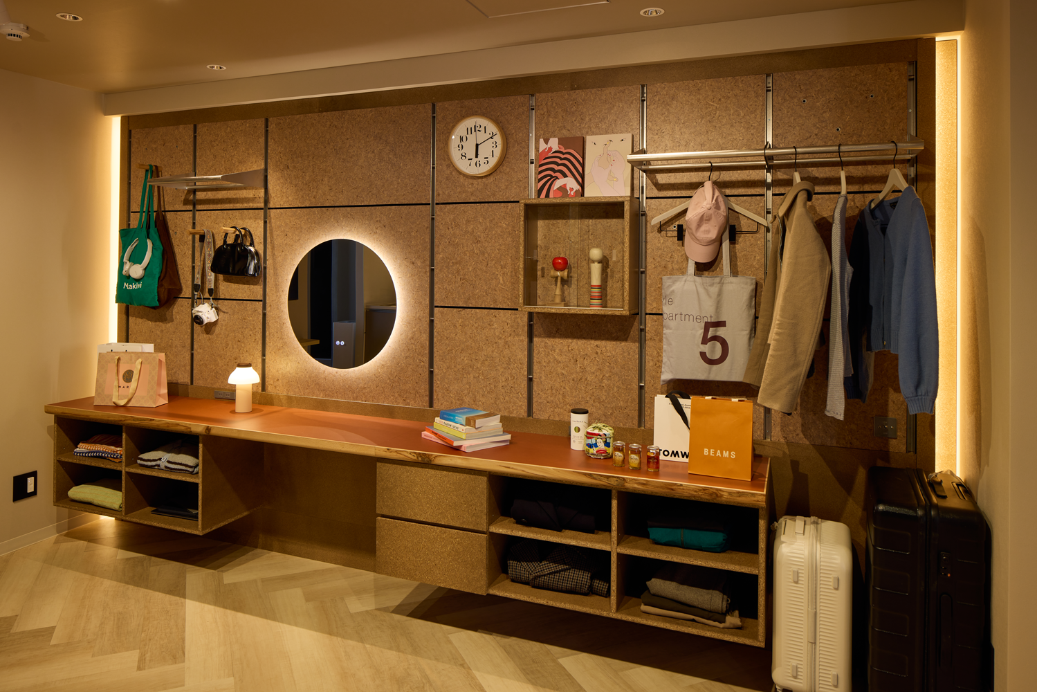 9-10Fは弊社が考えるSumuを体現すべく、滞在者が暮らすように旅できる家具として、ホテルとしての使用感と日常生活における使用感の両立を目指し、金物からパネルまで全て新規で開発・デザインしました。